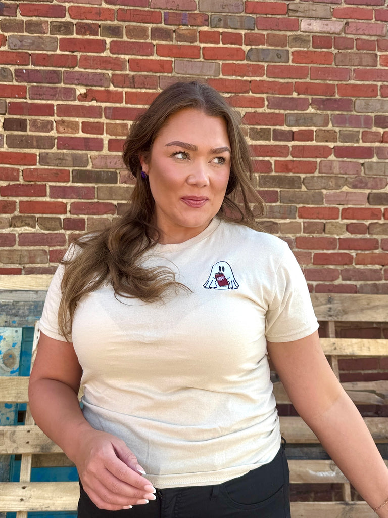 Make Halloween even more special with a the cutest custom embroidered ghost holding a sweet ghost!